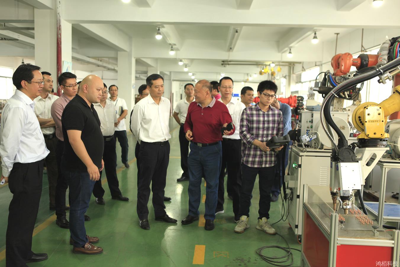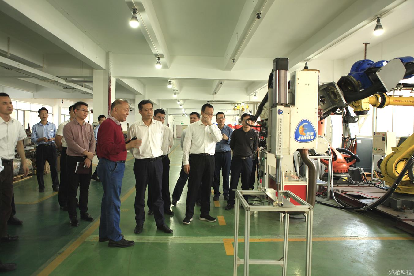 董事長韓玉琦向姚書記介紹次高頻機(jī)器人專用伺服點(diǎn)焊鉗