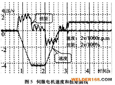 圖5是伺服電機(jī)的速度曲線和扭矩曲線。從圖中可以看到,第一階段對(duì)電機(jī)進(jìn)行速度控制,電機(jī)轉(zhuǎn)速響應(yīng)很快,轉(zhuǎn)速由0增加到2000r/m的過程十分平穩(wěn)。第二階段對(duì)電機(jī)進(jìn)行扭矩控制,電機(jī)由0增加到50% 的額定扭矩響應(yīng)很快,也沒有出現(xiàn)大的波動(dòng)。表明按照這個(gè)方法進(jìn)行調(diào)試是可行的,完全能夠滿足自動(dòng)化生產(chǎn)線的需要。